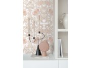 Hladká vliesová tapeta na zeď, květinový vzor v odstínech béžové, šedo-béžové, růžové a bílé.