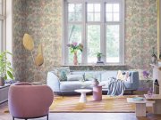 Vliesová tapeta s vinylovým povrchem, květinový vzor v odstínech béžové, růžové, zelené - jemná vláknitá textura. Foto interiéru je pouze ilustrační - odlišné barvy. Co u vás zaujme: detailní zpracování, šíře role. Design: moderní. Úroveň tapetování: pro