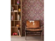 Ornamentální květinová tapeta s přírodními motivy béžové, hnědé a červené barvy.