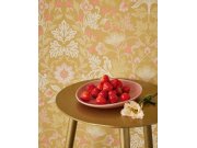 Ornamentální květinová tapeta s přírodními motivy béžové a hnědé barvy.