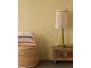 Vliesová tapeta na zeď - něžný květinový vzor dodá interiéru jemnost. Hnědý podklad, vzor v barvách zelené, bílé a žluté.