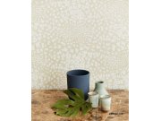 Stříbrný květinový vzor na krémové vliesové tapetě.