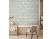Jemně plastická krémová vliesová tapeta s vinylovým povrchem, béžový a zelený květinový vzor ve stylu Art Deco, pololesklé detaily.