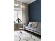 Tmavě modrá vliesová tapeta s květinovým vzorem - zřetelné tahy štětce, plastický efekt. Foto interiéru je pouze ilustrační.