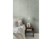 Hladká vliesová tapeta na zeď, květinový vzor v pastelových odstínech zelené, tyrkysové, růžové a béžové.