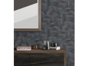 Jemně plastická pololesklá modro-hnědá vliesová tapeta s vinylovým povrchem, geometrický 3D vzor.