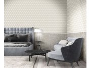 Luxusní, šedo-béžová, geometrická vliesová tapeta s vinylovým povchem. Kovový pololesk, výrazná textura, vzory hexagonů. Hexagon cca 10cm. Foto interiéru je pouze ilustrační - odlišné barvy.