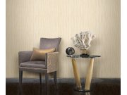 Luxusní vliesová tapeta s vinylovým povrchem, pololesklá textura v béžových odstínech, úzké proužky s vyšším leskem. Proužky cca 2,2 až 2,5 a 0,5 až 0,9cm. Co vás zaujme: kvalita zpracování, vysoká odolnost. Design: luxusní, glam. Úroveň tapetování: pro z