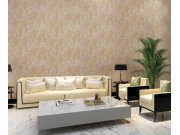 Luxusní vliesová tapeta na stěnu se zlato-béžovým plastickým vzorem na béžovém žíhaném podkladu. Šíře role 1,06 m.