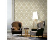 Luxusní krémová vliesová tapeta s vinylovým povrchem, zlaté odlesky, zlatý zámecký vzor.
