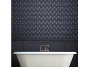 Luxusní tmavě modrá vliesová tapeta se stříbrným vzorem.