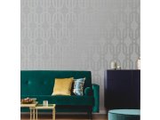 Luxusní šedo-stříbrná vliesová tapeta s vinylovým povrchem, efektní proplétaný vzor s metalickým pololeskem, stříbrný geometrický vzor.