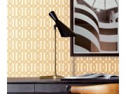 Luxusní vliesová tapeta s vinylovým povrchem, efektní proplétaný vzor s metalickým pololeskem, zlatý geometrický vzor.