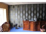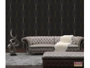 Vinylové tapety s vliesovým povrchem - na tapetách dochází ke spojení hedvábné textilie a výrazných metalických textur dodá vašemu interiéru luxus a styl. Podklad design černé textilie s jemným pololeskem, plastický geometrický ornamentální vzor. Textura