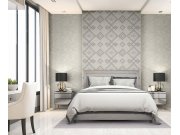 Šedá vliesová tapeta na zeď s jemným leskem a geometrickým vzorem.