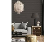 Vliesová tapeta s vinylovým povrchem - šedý podklad s jemným pololeskem, metalické textury v odstínech hnědé, oranžové a béžové. Barvy a odlesky se mění podle dopadu světla na tapetu. . Foto interiéru je pouze ilustrační - odlišné barvy. Co u vás zaujme: