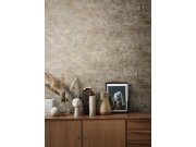 Šíře role 1,06 m. Luxusní vliesové tapety s vinylovým povrchem inspirované krásou brokátových látek - jemně plastický design, odstíny hnědé, béžové a šedo-modré se zlatými třptkami. Snadno zkombinujete se souvisejícími tapetami.