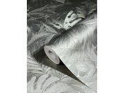 Luxusní vliesová tapeta s vinylovým povrchem, jemně plastický vzor s listy, kovový lesk.