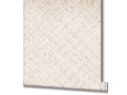 Luxusní vliesová tapeta v krémové barvě s plastickým geometrickým vzorem na podkladě imitující štukovou omítku. Foto interiéru je pouze ilustrační - odlišné barvy.
