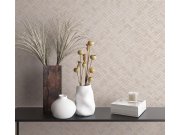 Luxusní vliesová tapeta s vinylovým povrchem, geometrické vzory, látková textura, krémový pololesk. Foto interiéru je pouze ilustrační - odlišné barvy.