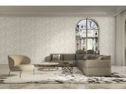 Luxusní krémová vliesová tapeta s vinylovým povrchem, imitace historických omítek, štuku, perlový lesk. Foto interiéru je pouze ilustrační - odlišné barvy.