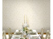 Luxusní béžová vliesová tapeta, imitace plastické štukové omítky se zlatými odlesky. Foto interiéru je pouze ilustrační - odlišné barvy.