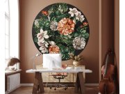 Vliesová, kruhová tapeta s malbou květin.