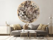 Vliesová, kruhová tapeta s květy na hnědém podkladu.