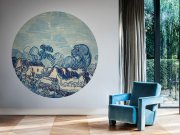 Vliesová, kruhová tapeta. Malba vesnických domků inspirovaná dílem Van Gogha.