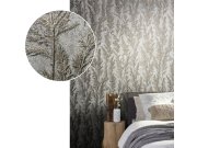 Šedo-stříbrná vliesová tapeta na zeď, metalické efekty, bronzová stébla trávy.