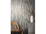 Šedá vliesová tapeta na zeď, metalické efekty, šedo-modrá stébla trávy.