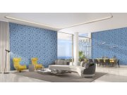 Luxusní vliesová tapeta s vinylovým povrchem. Jemný geometrický vzor v modro-zelených odstínech se stříbrnými detaily.