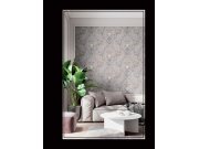 Luxusní jemně strukturovaná tapeta se zámeckým vzorem v béžových odstínech na šedém podkladu s perlovým leskem a zlatými efekty.