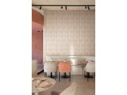 Luxusní, výrazně plastická, geometrická vliesová tapeta s vinylovým povrchem, odstíny šedo-béžové s kovovým leskem. Foto interiéru je pouze ilustrační - odlišné barvy.