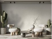 Luxusní vliesová tapeta s vinylovým povrchem, jemná textura, odstíny šedo-béžové. Foto interiéru je pouze ilustrační - odlišné barvy.