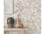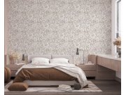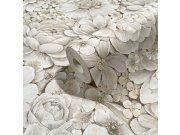 Luxusní, plastická, šedo-béžová květinová vliesová tapeta s vinylovým povrchem.