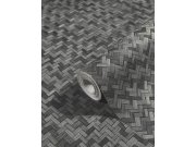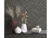 Luxusní jemně plastická šedo-černá pololesklá vliesová tapeta na zeď, 3D geometrický vzor. Tapeta vhodná do ložnice, obývacího pokoje, nebo pracovny.