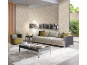 Luxusní jemně strukturovaná tapeta se zámeckým vzorem v béžových odstínech na šedém podkladu s perlovým leskem a zlatými efekty.
