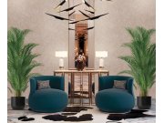 Plastická tapeta s jemnou strukturou a s výrazným kovovým efektem v barvě měděné a šedomodré dodá interiéru luxus a styl.