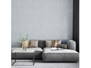 Luxusní šedo-modrá vliesová tapeta s vinylovým povrchem, látková textura, kostka.
