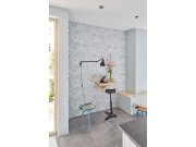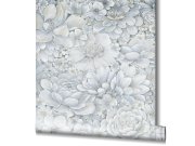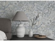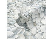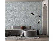 Luxusní, strukturovaná, šedo-modrá květinová vliesová tapeta s vinylovým povrchem.
