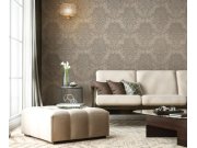 Luxusní hnědo-šedá vliesová tapeta na zeď s bohatým plastickým ornamentálním metalickým vzorem. . Šíře role 1,06 m.