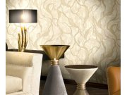 Luxusní plastická béžová vliesová tapeta s vinylovým povrchem, imitace historické štukové omítky, prosvítající zlaté a stříbrné metalické plochy. Foto interiéru je pouze ilustrační - odlišné barvy.