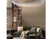 Vliesová tapeta na zeď. Vzor odstíny metalické zlaté, podklad v odstínech vínové a hnědé.