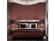 Vliesová tapeta na zeď. Vzor odstíny metalické zlaté, podklad v odstínech vínové a hnědé.