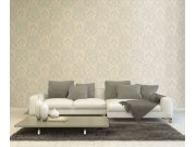 Vinylová, krémová tapeta s metalickým šedo-béžovým zámeckým vzorem.