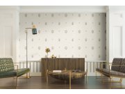 Vinylová, krémová tapeta s metalickým zámeckým vzorem.