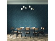 Luxusní vliesová tapeta se zlatým a stříbrným plastickým vzorem na modrém žíhaném podkladu. Šíře role 1,06 m.
