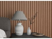 Jemně plastická 3D vliesová tapeta na zeď, imitace dřeva, dřevěných palubek, obložení, lamel. Vliesová tapeta s vinylovým povrchem.