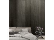Šedo-černá vliesová tapeta na zeď, imitace lamel, palubek, jemně plastická textura. .